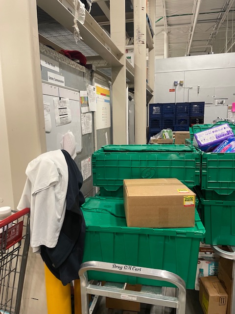 Power panel by dairy aisle And olive oil. Backstock left on cart near GM Cage as per mark’s instruction.